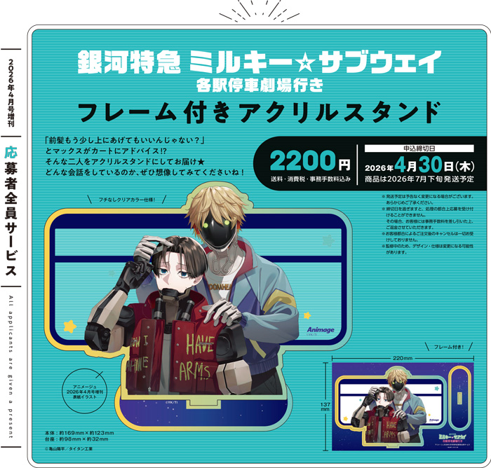 【プリンスアニメージュ応募者全員サービス】『銀河特急 ミルキー☆サブウェイ 各駅停車劇場行き』フレーム付きアクリルスタンド(送料・消費税・事務手数料込み)