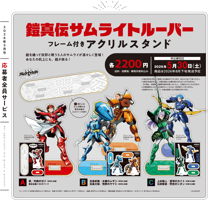 【アニメージュ5月号 応募者全員サービス】「鎧真伝サムライトルーパー」フレーム付きアクリルスタンドB(送料・消費税・事務手数料込み)